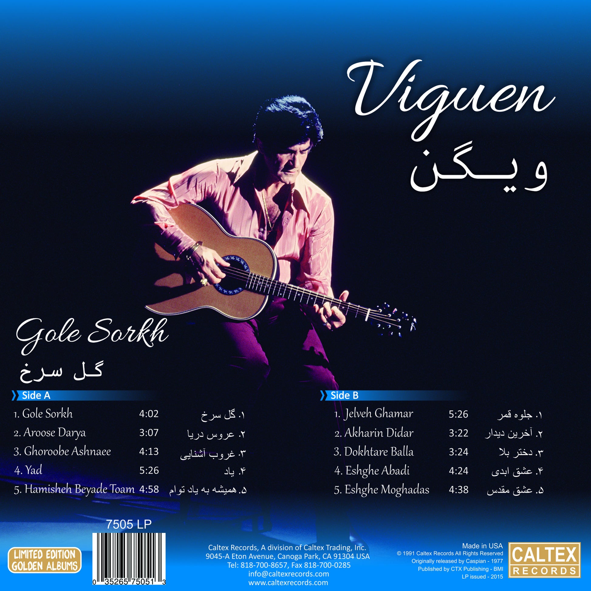 A rare limited edition vinyl record "Gole Sorkh" by the legendary Viguen. This collector’s item LP is limited to only 100 copies worldwide.